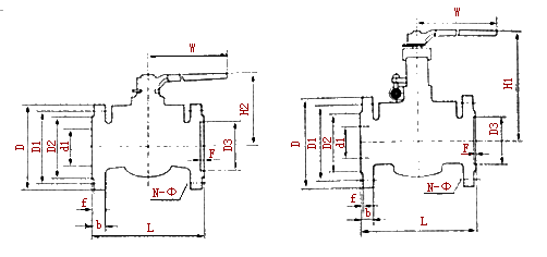 DN | d1 | L | H1 | H2 | W | E | D3 | F | D2 | D1 | D | b | f | N-Φ |